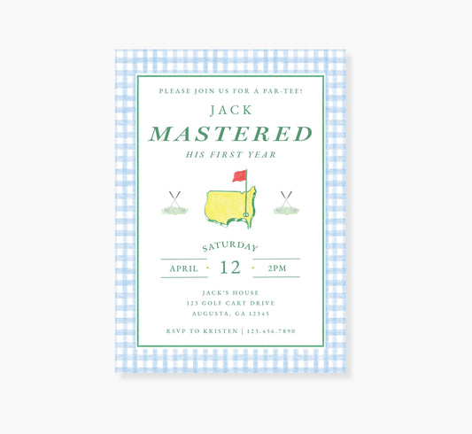 Blue Golf Masters Birthday Party Invitation