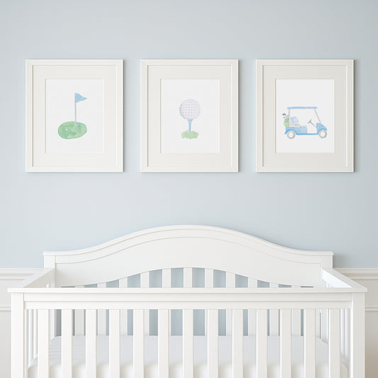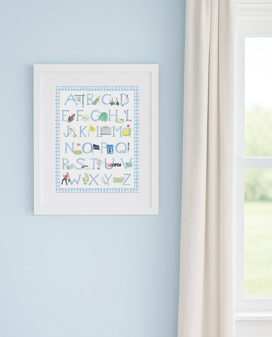 Blue "ABCs of Golf" Alphabet Print – Watercolor Golf Nursery Wall Art for Baby