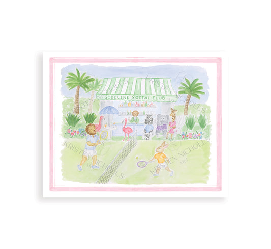 "Sideline Social Club" Watercolor Animals Tennis Print