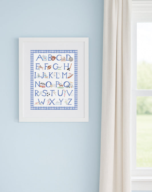 "ABCs of Sports" Alphabet Print – Watercolor Sports Nursery Wall Art for Baby