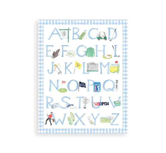 Blue "ABCs of Golf" Alphabet Print – Watercolor Golf Nursery Wall Art for Baby