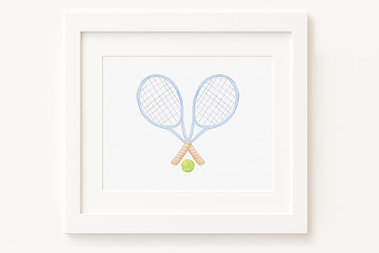 "Love All" Vertical Tennis Rackets Watercolor Print