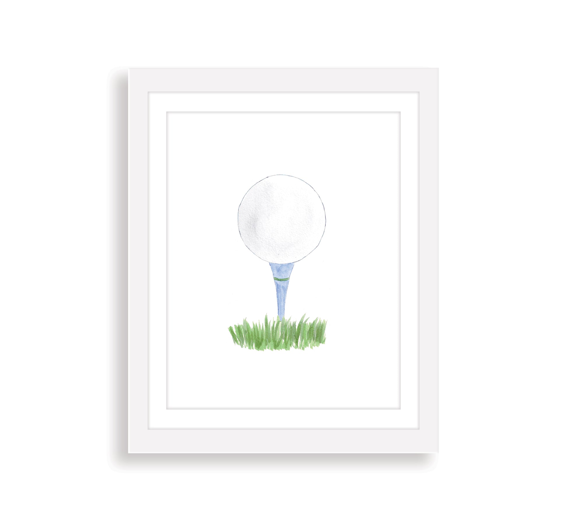 Incorporate golf into your child's room with this hand-drawn watercolor print of a white golf ball on navy golf tee. This golf watercolor print is perfect wall art for a golf-themed nursery, kid's room, or playroom. This would also make a great gift for a baby shower or new baby who has golf-loving parents.